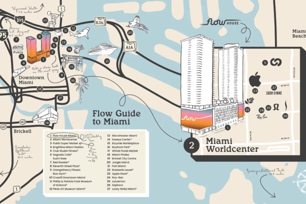 Flow House is located in Miami Worldcenter, a nineteen-year-old secret in the making, bringing together the best parts of South Florida.
